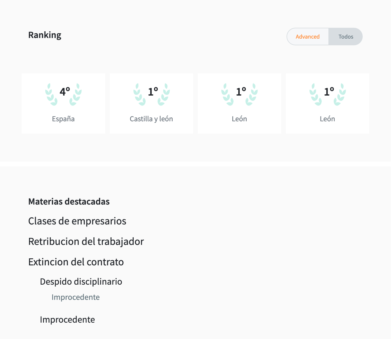 El análisis de mi trayectoria por Emérita Legal me identifica como uno de los mejores abogados especialistas en DERECHO DEL TRABAJO. Utilizan el análisis de millones de casos reales para valorar mi actividad jurídica según el siguiente ranking: